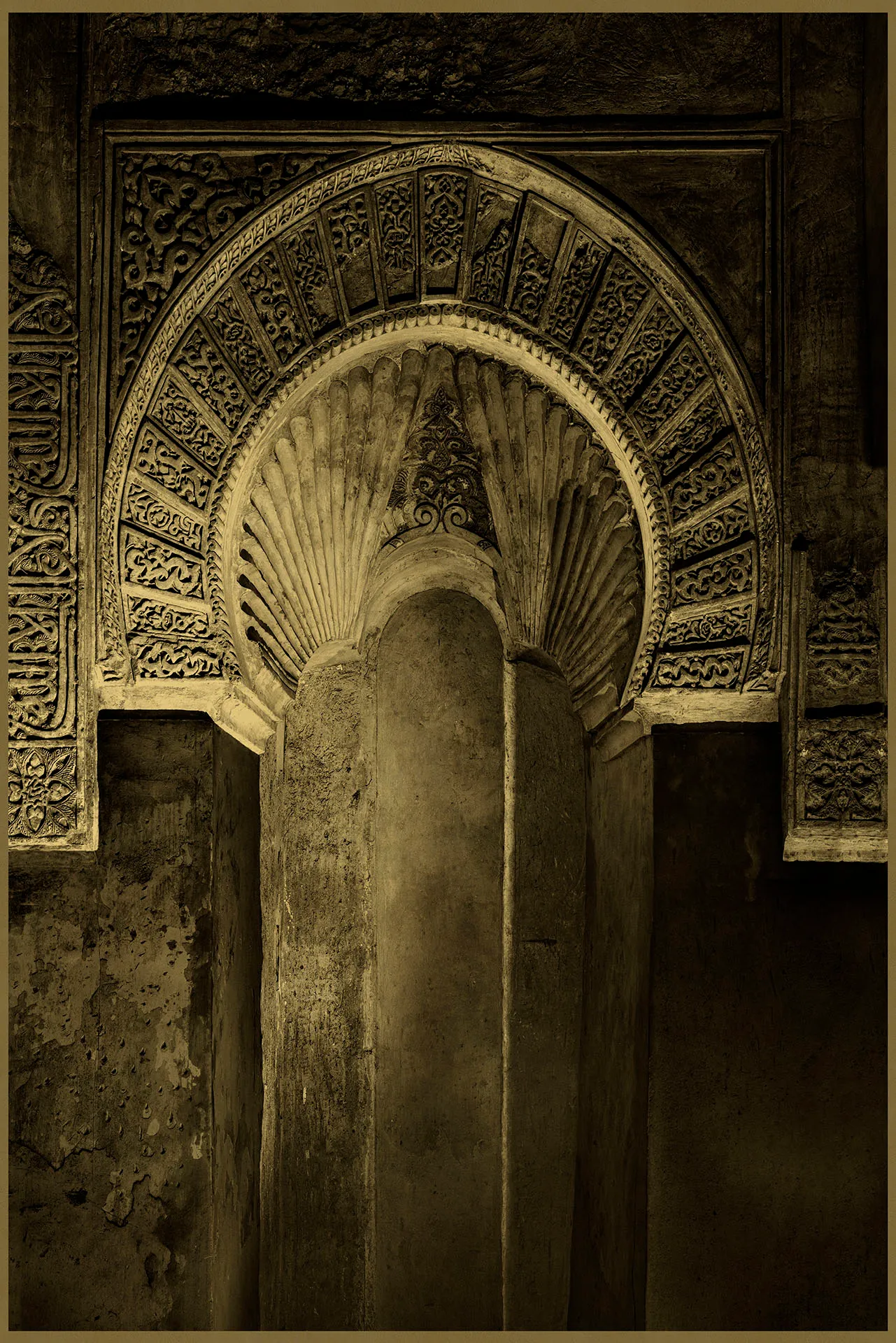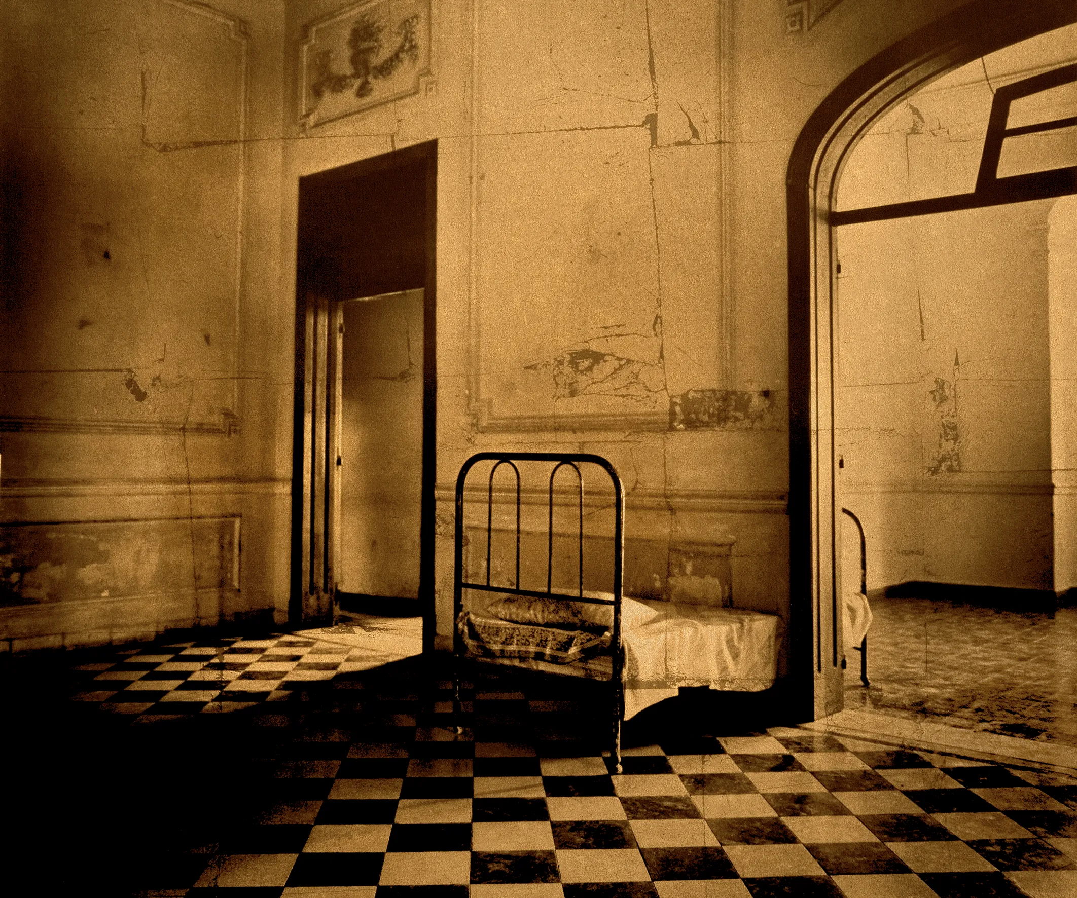 Nada áureo puede permanecer. El poeta norteamericano Robert Frost versaba acerca de la cualidad efímera del precioso metal. Así como el Edén se hunde en desconsuelo y el alba atardece transcurridas las horas del día, la pátina del tiempo hace palidecer el oro. Las obras que forman parte de esta exposición revelan una poética sintonía entre significantes y significados. Así, el oro que Luis González Palma (Ciudad de Guatemala, 1957) utiliza en el seno de sus obras funciona como elemento simbólico para hacer visible ese brillo invisible, pero presente, que late en cada uno de nosotros y en el mundo. Una connotación sagrada que alude simultáneamente a la tradición de la América precolombina y al arte barroco en Guatemala. El concepto de vanitas aparece recurrentemente en la obra de Castro Prieto (Madrid, 1958) mediante el uso del oro y el vidrio. Ambos señalan la naturaleza efímera de la riqueza y de todo aquello que es material. Lugares y objetos donde lo que era importante deja de serlo, aquello que otrora tuvo esplendor, con el paso del tiempo se ha convertido en total decadencia. Cecilia Paredes (Lima, 1950) añade oro a bordados de seda que alguna vez fueron dorados, para devolverles un pretérito resplandor. Aquel tiempo, ahora depositario de anhelos y nostalgias, suelta lastre y se recupera aliviando en parte las tristezas de la memoria. Gracias a su brillo inherente, el oro ha sido un metal muy apreciado desde tiempos remotos. Utilizándolo en impresiones sobre cristal, Isabel Muñoz (Barcelona, 1951) consigue que sus obras, además de tener luz propia, conecten con los inicios de la fotografía, con aquellas placas de vidrio que antecedieron a la película fotográfica. También Bohnchang Koo (Seúl, 1953) reflexiona sobre la ancestral fascinación por este símbolo de esplendor que ha coronado dinastías y adornado linajes. El oro enfatiza la soberanía y la riqueza de aquellos con poder absoluto. Sin embargo, todos los que intentaron poseerlo han desaparecido. No así la espléndida belleza de las reliquias doradas que recuperan el brillo en sus imágenes.
