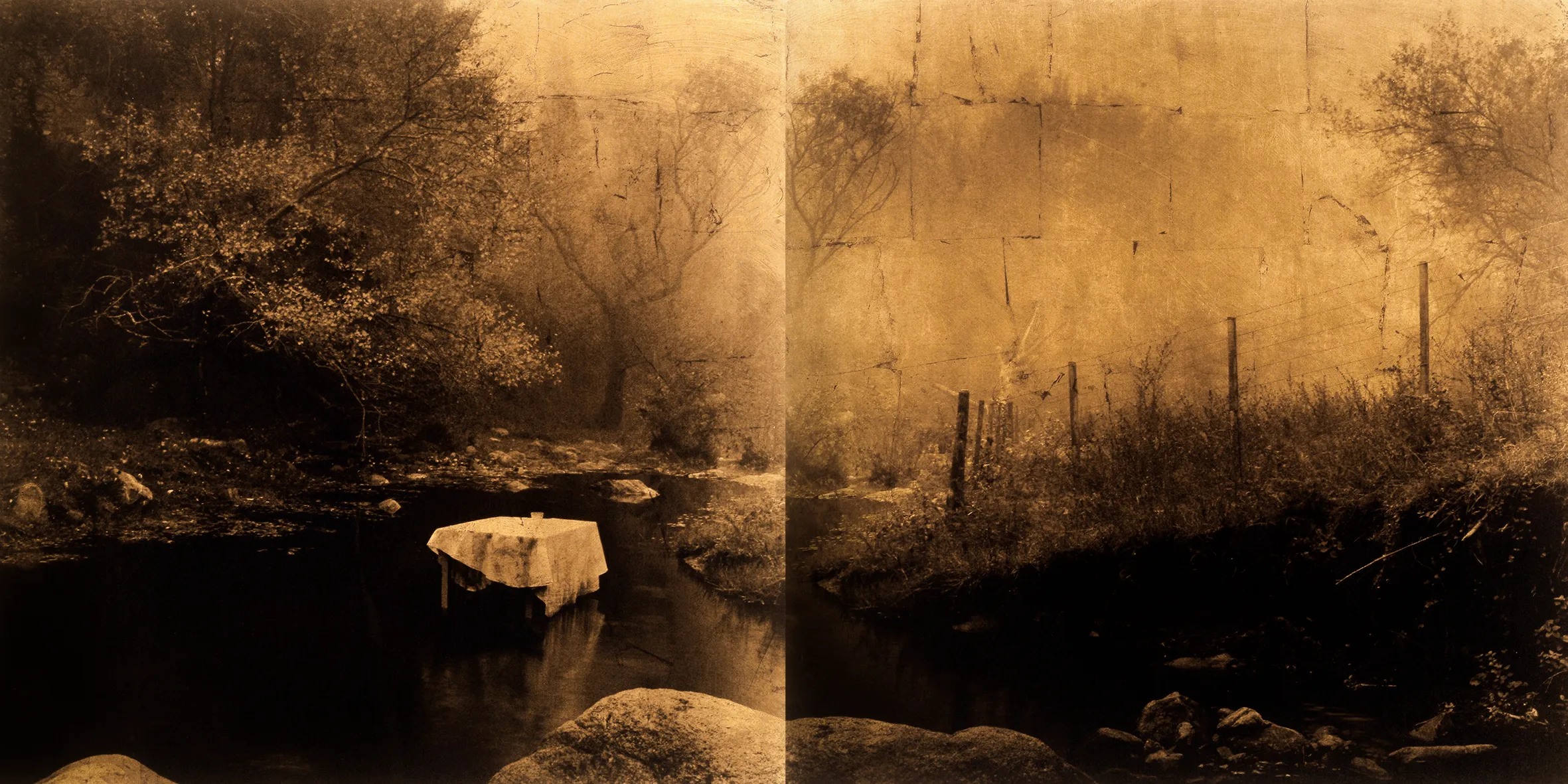 Tríptico. Película ortocromática, láminas de oro y resina / Triptych. Orthochromatic film, gold and resin foils