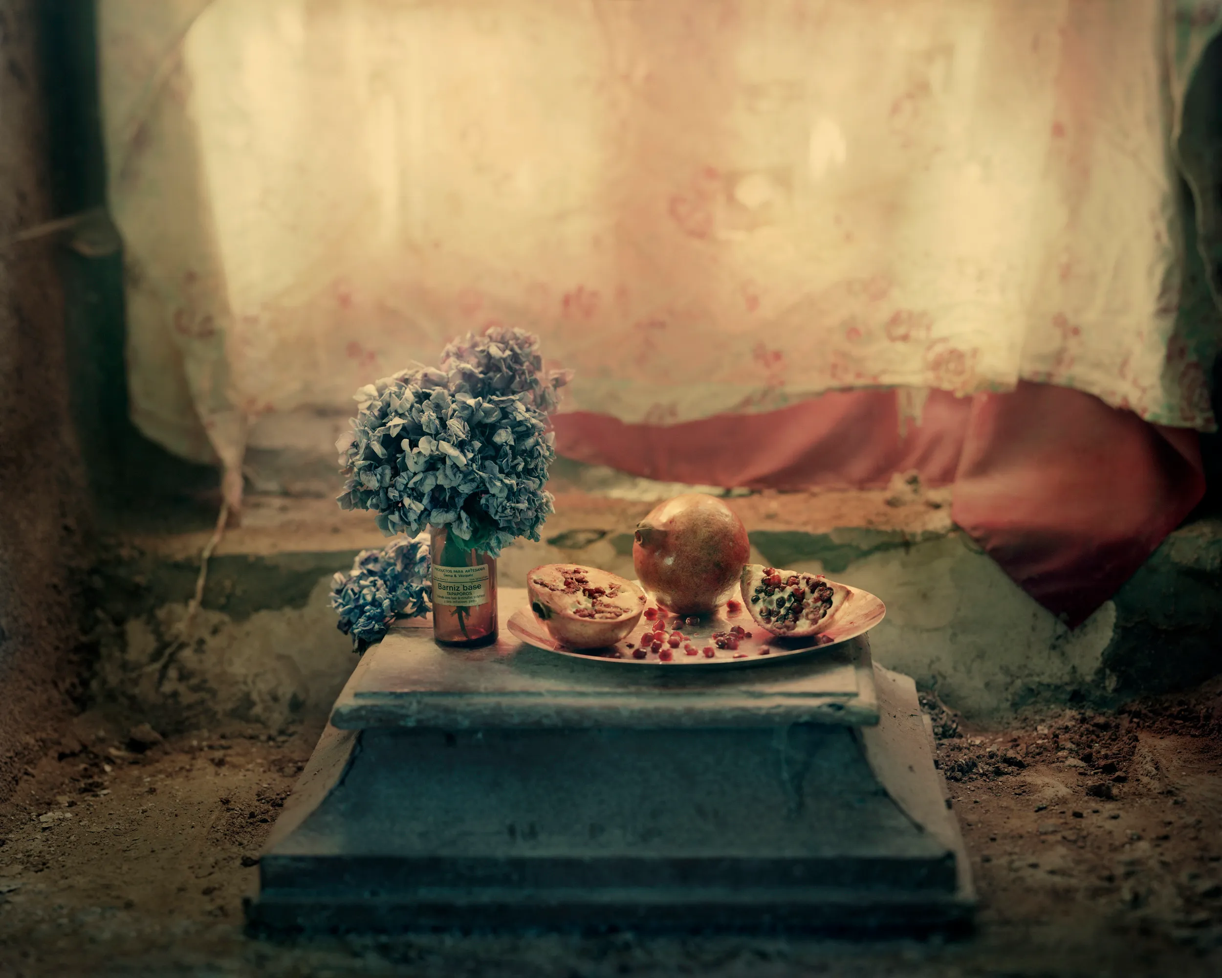 Naturaleza muerta con hortensias y granadas, 2019