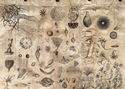 Impresión de pigmentos naturales sobre arpillera preparada artesanalmente / Printing of natural pigments on handmade burlap