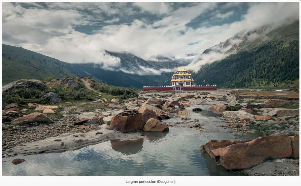 El artista acompañó al Lama en su deambular cotidiano, compartiendo una vida espiritual manifiesta en cada pequeña acción y en la manera de relacionarse con el mundo. A través de diversas fotografías nos muestra sus ocupaciones diarias – rezos, repetición de mantras, meditaciones, visitas al templo – y su entorno más inmediat el misticismo de los paisajes de Dzogchen en el antiguo Reino de Kham, la humildad y compromiso de sus gentes y la idiosincrasia de una cultura ligada a lo meramente trascendental. Las imágenes expresanesta filosofía mediante símbolos velados y metáforas visuales. La quietud y la oscuridad remiten al silencio, la luz y el movimiento al despertar, el camino al curso del aprendizaje…