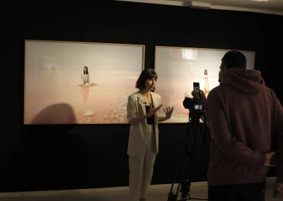 Trilogía del alma discurre por varias vías y todas se complementan y conectan. En su totalidad, estas series de fotografías, vídeos y dibujos van dialogando entre sí y están unidas con un “hilo solar”. Un hilo de oro y silencioso, un velo negro de guipur…Están unidas por piedras, y ellas, las mujeres representadas, desean ser piedra o vivir en ellas.
